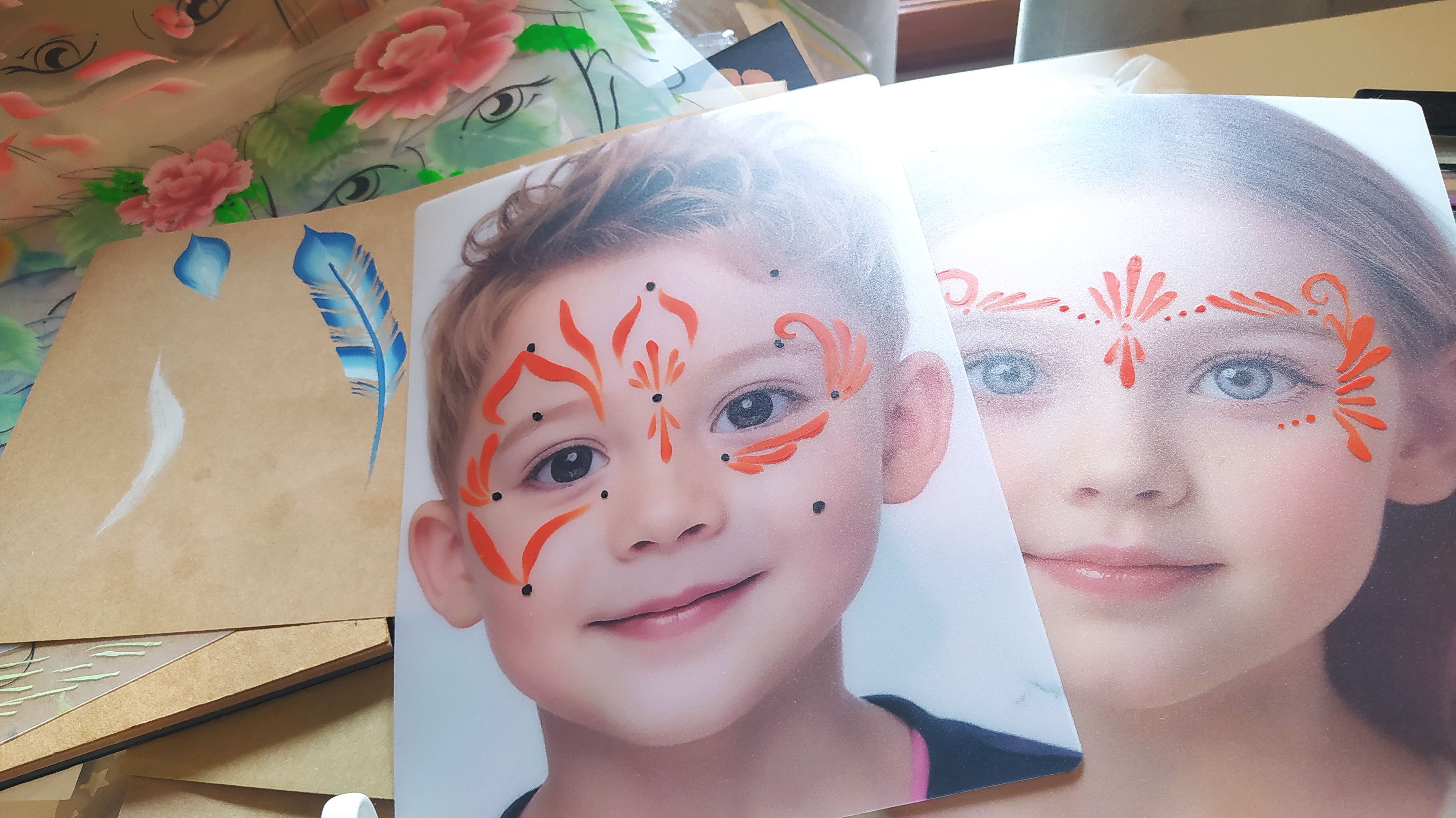 farby przeznaczone do malarstwa na ciele, pędzle, gąbki,